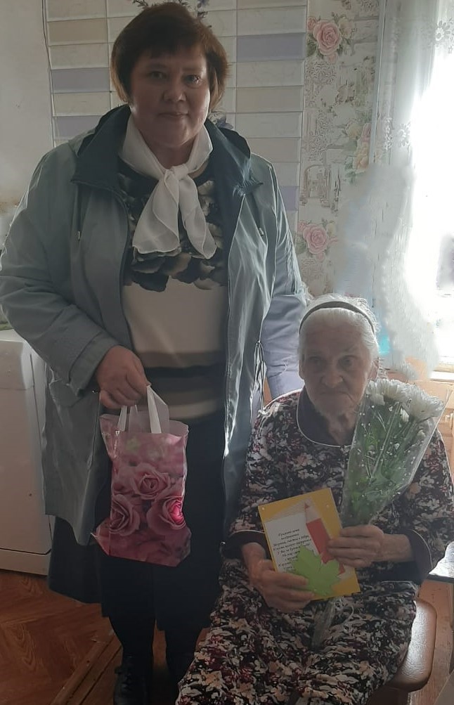 Со словами благодарности и добрыми пожеланиями учителям, находящимся на заслуженном отдыхе, были вручены поздравительные открытки от детей-волонтеров, цветы и подарки.