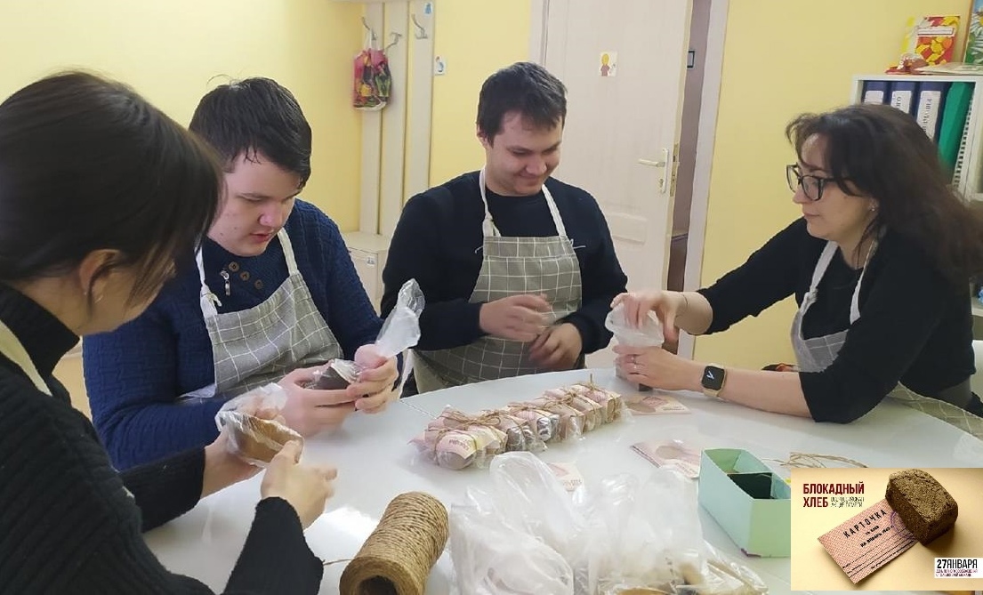 Под руководством социальных педагогов мальчишки подготовили символ акции - кусочки хлеба весом в 125 граммов - к раздаче и вручили их жителям поселка.