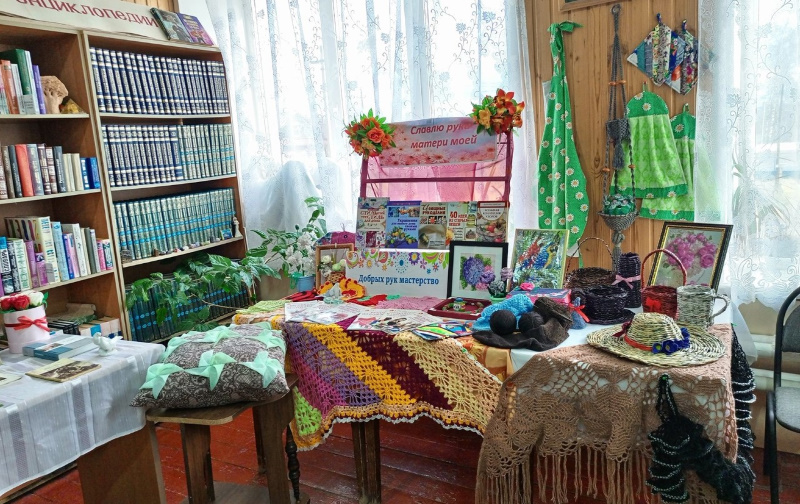 Во время встречи, посвященной празднованию Дня матери, любители рукоделия познакомились с выставкой изделий ручной работы жителей р.п. Мухтолово «Я славлю руки матери моей».