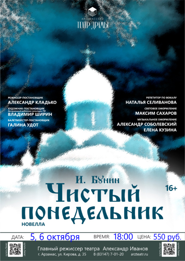 5 октября участники клуба по интересам для граждан пенсионного возраста "Гармония" посетили Арзамасский драматический театр. В этот день на сцене театра шла премьера спектакля "Чистый понедельник" (по мотивам сборника рассказов И.Бунина "Темные аллеи").