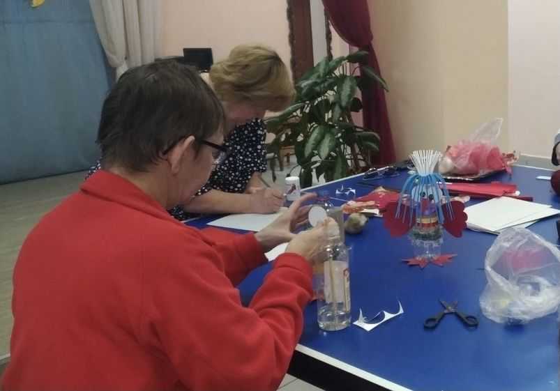 Пасмурная погода - не повод для грусти. Инструктор по труду Засыпкина Ирина Георгиевна вновь дала работу фантазии и рукам отдыхающих отделения дневного пребывания. А мастерили они птиц. В ход пошли цветные нитки, клей, пластиковые бутылки. Тихо мурлыча себе под нос любимые песни, мастерицы создавали чудесных птиц. Получилось очень мило. Может, это тот случай, когда птицу счастья не нужно искать по белому свету. Все в наших руках! В конце осенних посиделок получился целый птичий двор. А это значит, что в домах наших отдыхающих поселится счастье, да и планета станет чище, ведь работали мы под девизом: «Отходы в доходы!»