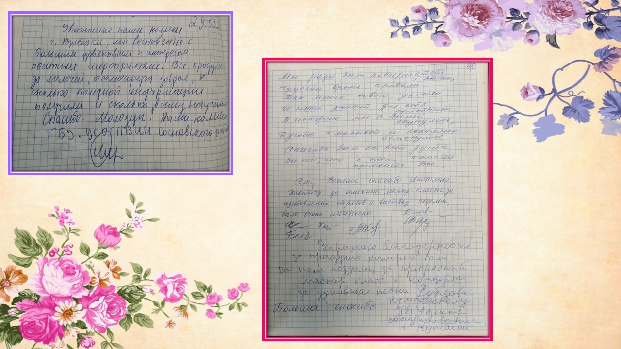 От лица всех гостей Центра «Долголетие по-Нижегородски» МАУК «Парк Швейцария» получатели социальных услуг Н.М. Мараева и Т.В. Рубцова выразили следующие слова благодарности за прекрасно проведенный Праздник Русской соломки «Соломенный оберег»: