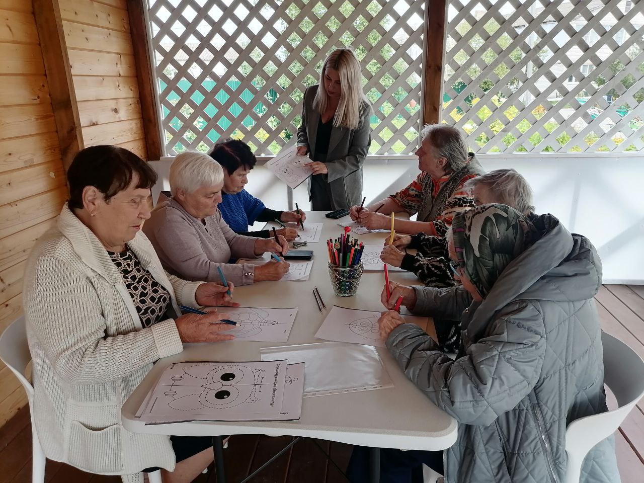 В отделении «Специализированный жилой дом для граждан пожилого возраста и инвалидов» ГБУ «КЦСОН Краснобаковского муниципального округа» продолжаются занятия по нейробике в рамках программы «Ключи к здоровью».Одна из методик предложенных на занятии упражнения на одновременное рисование двумя руками, полезна для пожилых людей, так как способствует развитию когнитивных функций, активизирует оба полушария мозга, улучшает мелкую моторику и формирует новые нейронные связи. Это упражнение тренирует синхронность движений, что благотворно сказывается на общем самочувствии и умственной активности.
