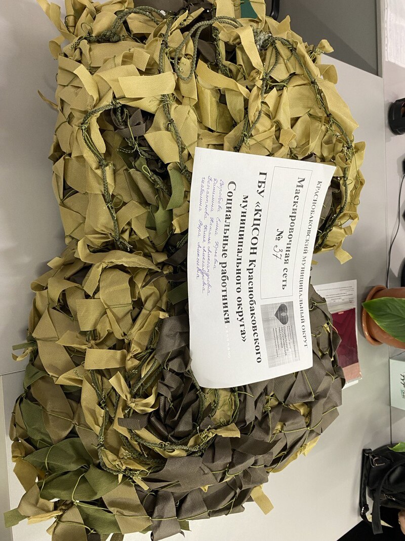 Социальные работники ГБУ "КЦСОН Краснобаковского муниципального округа" продолжают плести маскировочные сети для отправки на СВО