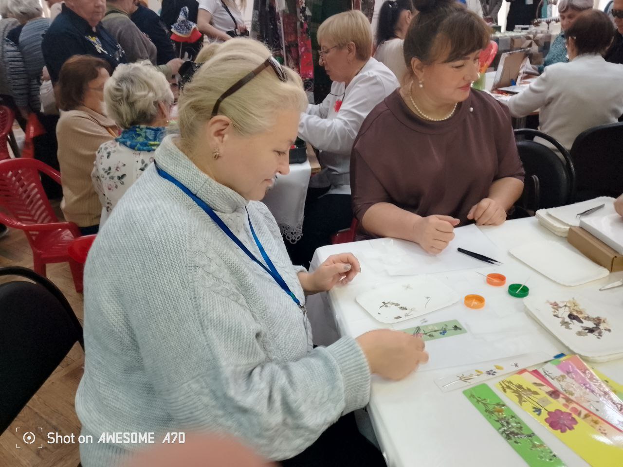 Представители отделения дневного пребывания- Людмила Анатольевна Амельченко и Людмила Николаевна Виноградова радовали посетителей выставки поделками,сделанными своими руками.Мероприятие было очень ярким и красочным:выставки,мастер-классы,выступление творческих коллективов,концертная программа. Кругом царила приятная праздничная суета.