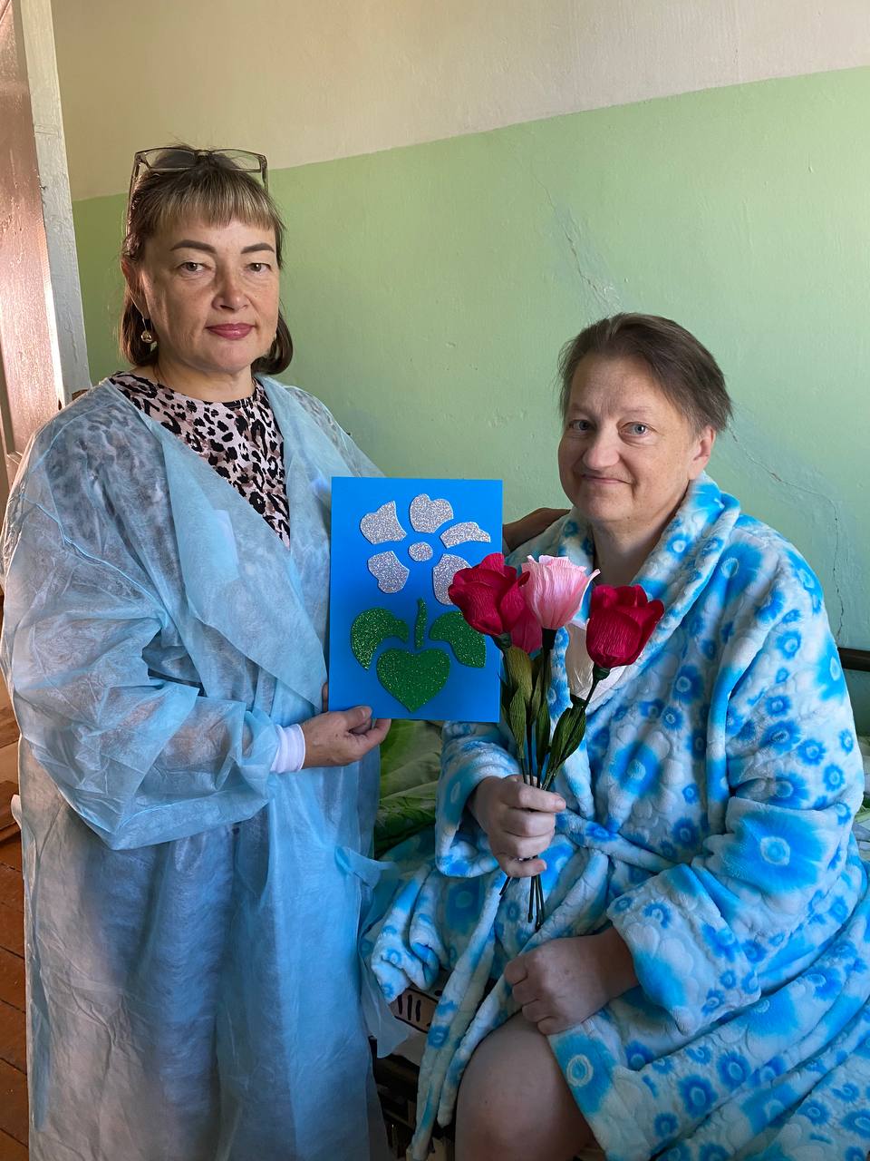 Сотрудники отделения срочной социальной службы ГБУ "КЦСОН Краснобаковского муниципального округа" вручили открытки обслуживаемым отделения сестринского ухода Краснобаковской ЦРБ.
