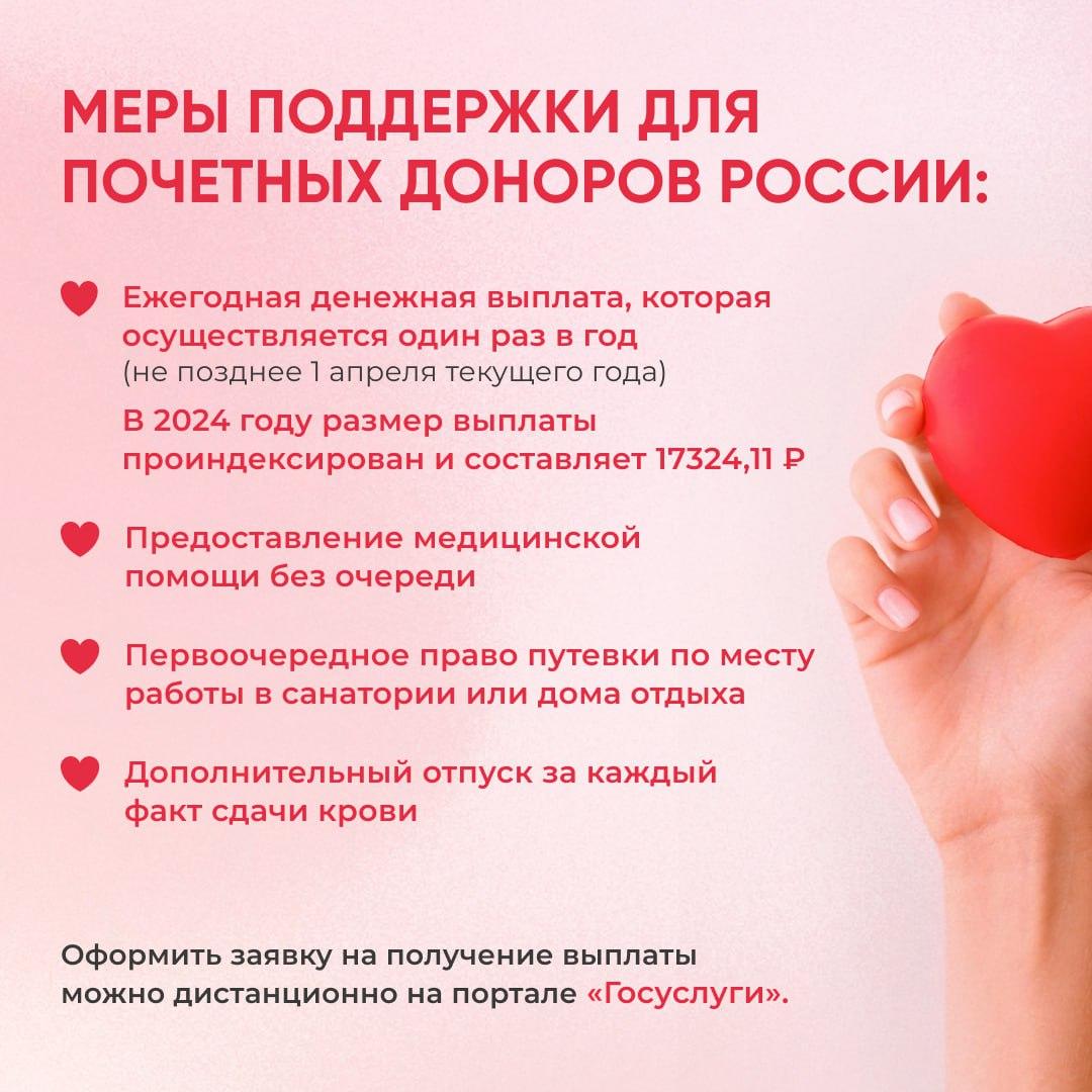 Напоминаем, что получить нагрудный знак «Почетный донор России», а также полагающиеся к нему меры поддержки, предусмотренные в Нижегородской области в 2024 году, могут граждане, соответствующие следующим критериям: