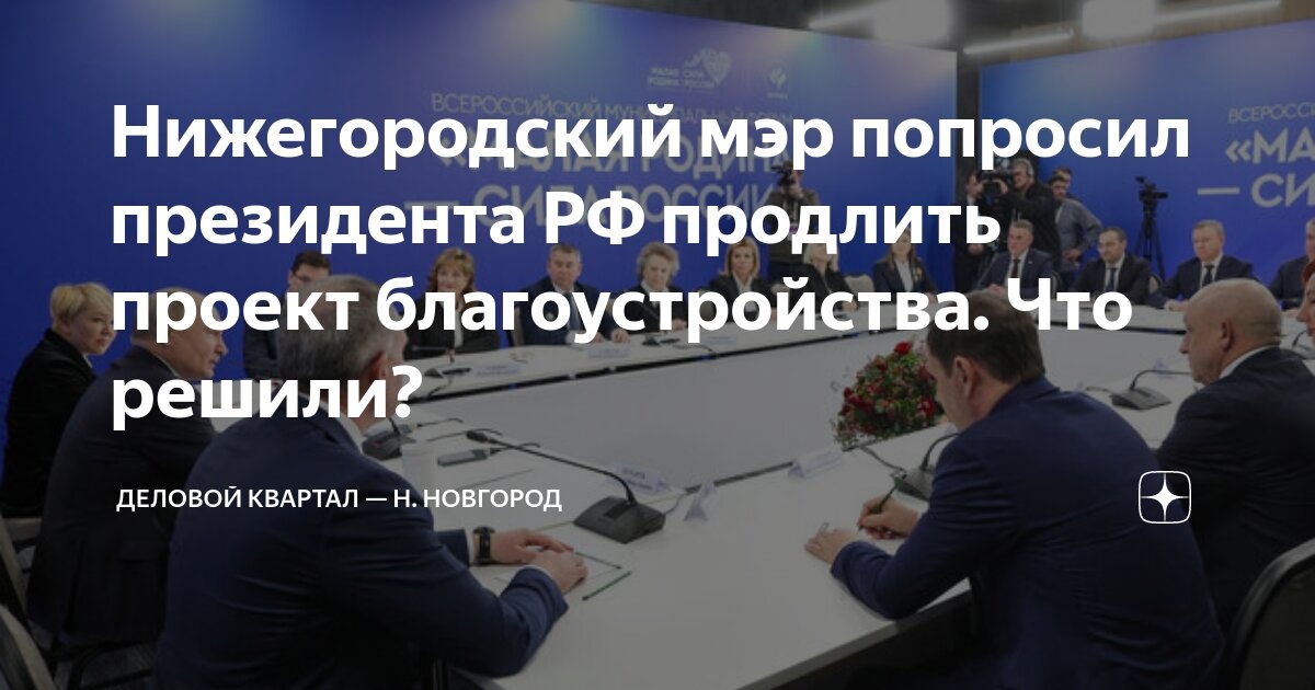 Об этом Владимир Путин объявил на встрече с мэрами городов. Президент отметил, что результаты благоустройства есть благодаря работе руководителей муниципалитетов. «Потому что у нас получилось то, о чем я вас просил, а именно - я вас просил включить в этот процесс людей», - подчеркнул Путин.