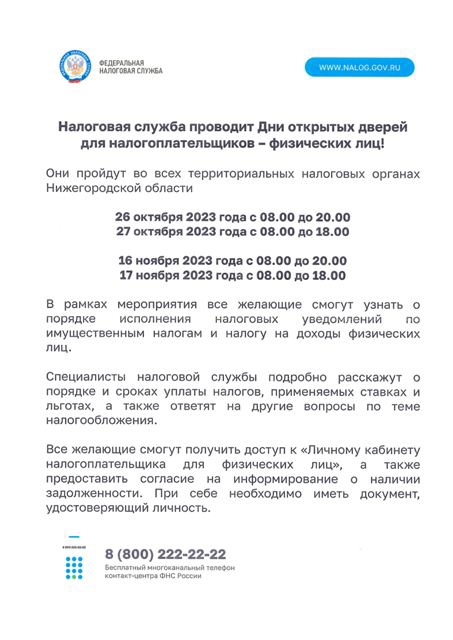 Управление Федеральной налоговой службы России по Нижегородской области проводит Дней открытых дверей для налогоплательщиков - физических лиц.