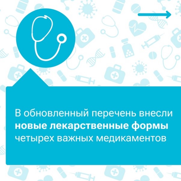 Добавили лекарственные формы четырёх медикаментов: сапроптерин — для лечения фенилкетонурии, глекапревир+пибрентасвир — противовирусное для детей с хроническим гепатитом С, иммунодепрессант пирфенидон и обезболивающее просидол.