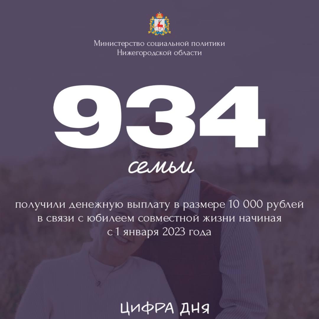 Напоминаем, что единовременную выплату в размере 10 тысяч рублей могут получить супруги, состоящие в зарегистрированном браке 50, 60 и 70 лет и постоянно проживающие на территории Нижегородской области (в течение не менее десяти лет, предшествующих году получения единовременной выплаты), при условии, что их брак не был расторгнут либо признан судом недействительным. По всем вопросам вы можете обращаться по Единому социальному телефону 8-800-250-21-52 или номеру клиентской службы Управления социальной защиты по месту проживания.