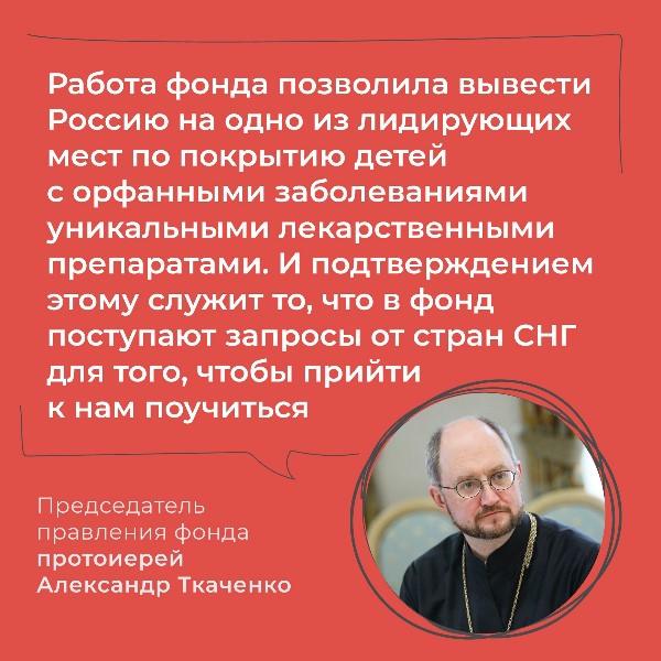 «С начала 2023 года 30 детям поставили спинальную мышечную атрофию. 17 из них фонд уже одобрил заявки, из них 13 детям назначили лекарство «Золгенсма» — самый дорогой в России препарат. Четырём другим пациентам из-за особенности заболевания выписали другие препараты», — рассказал председатель правления «Круга добра» протоиерей Александр Ткаченко.