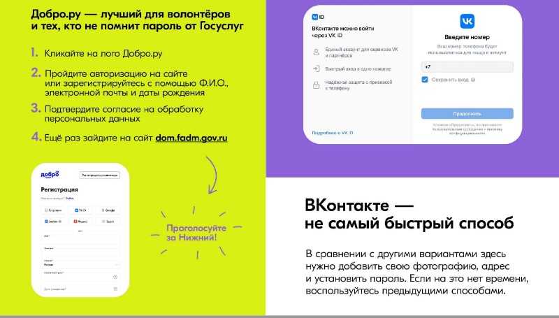 Чтобы проголосовать, необходимо авторизоваться в АИС «Молодёжь России» или пройти быструю регистрацию через VK ID, Госуслуги или dobro.ru.