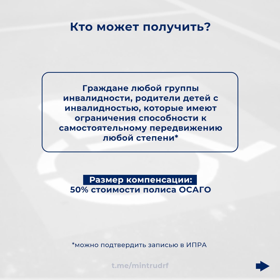 Граждане с инвалидностью и родители детей с инвалидностью могут получить компенсацию в размере 50% стоимости полиса ОСАГО.