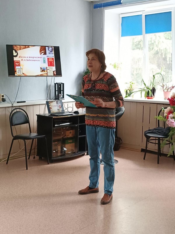 В нашем отделении дневного пребывания сегодня состоялся литературный вечер, посвященный жизни и творчеству этого талантливого поэта. Специалист библиотеки им. П. Бажова Сорокина Ирина подготовила для отдыхающих центра видеопрезентацию, подготовила для прослушивания музыкальные произведения, написанные на стихи Н.А. Заболоцкого.