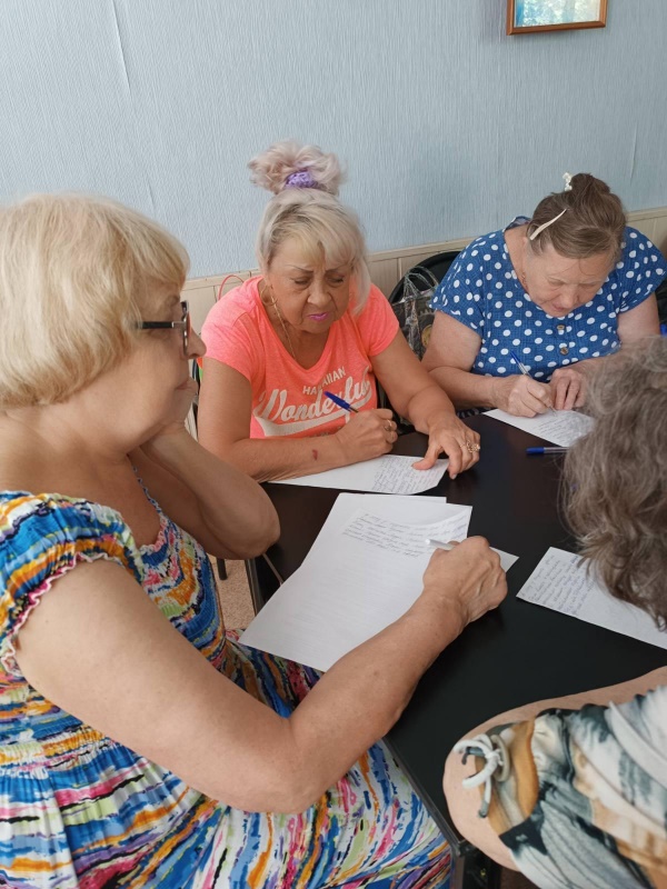 Наши отдыхающие разбились на две команды и соревновались в умении писать тексты по заданным параметрам, угадывали музыкальные произведения по словам, составляли буриме.