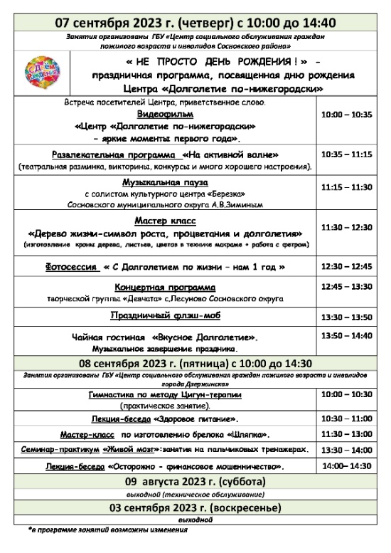 Расписание работы центра "Долголетие по-нижегородски"в парке "Швейцария" 04.09.2023 - 10.09.2023 г.
