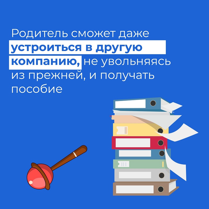 Также родитель сможет в декретном отпуске устроиться на другую работу, не увольняясь с прежней.
