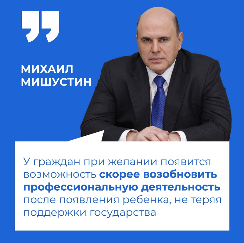 Родители смогут получать пособие, даже в случае досрочного выхода из декретного отпуска. Таким образом, в течение 1,5 лет после родов родитель сможет получать одновременно и пособие, и зарплату. Об ожидаемых нововведениях, подготовленных Правительством по поручению президента РФ Владимира Путина, сообщил премьер-министр РФ Михаил Мишустин.