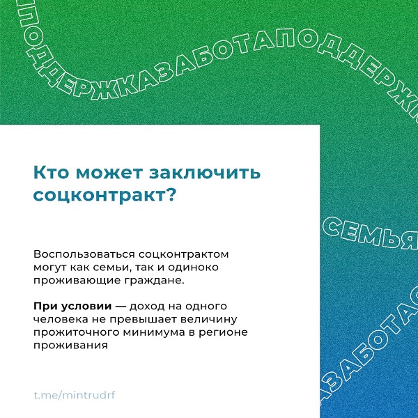 📈 Социальный контракт помогает выйти на стабильный доход и улучшить жизненную ситуацию. В приоритете при заключении контракта — семьи с детьми.