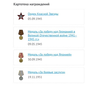 Воинская часть: 33 гвардейский минометный полк, 143 танковая бригада Награды:Орден Отечественной войны II степени