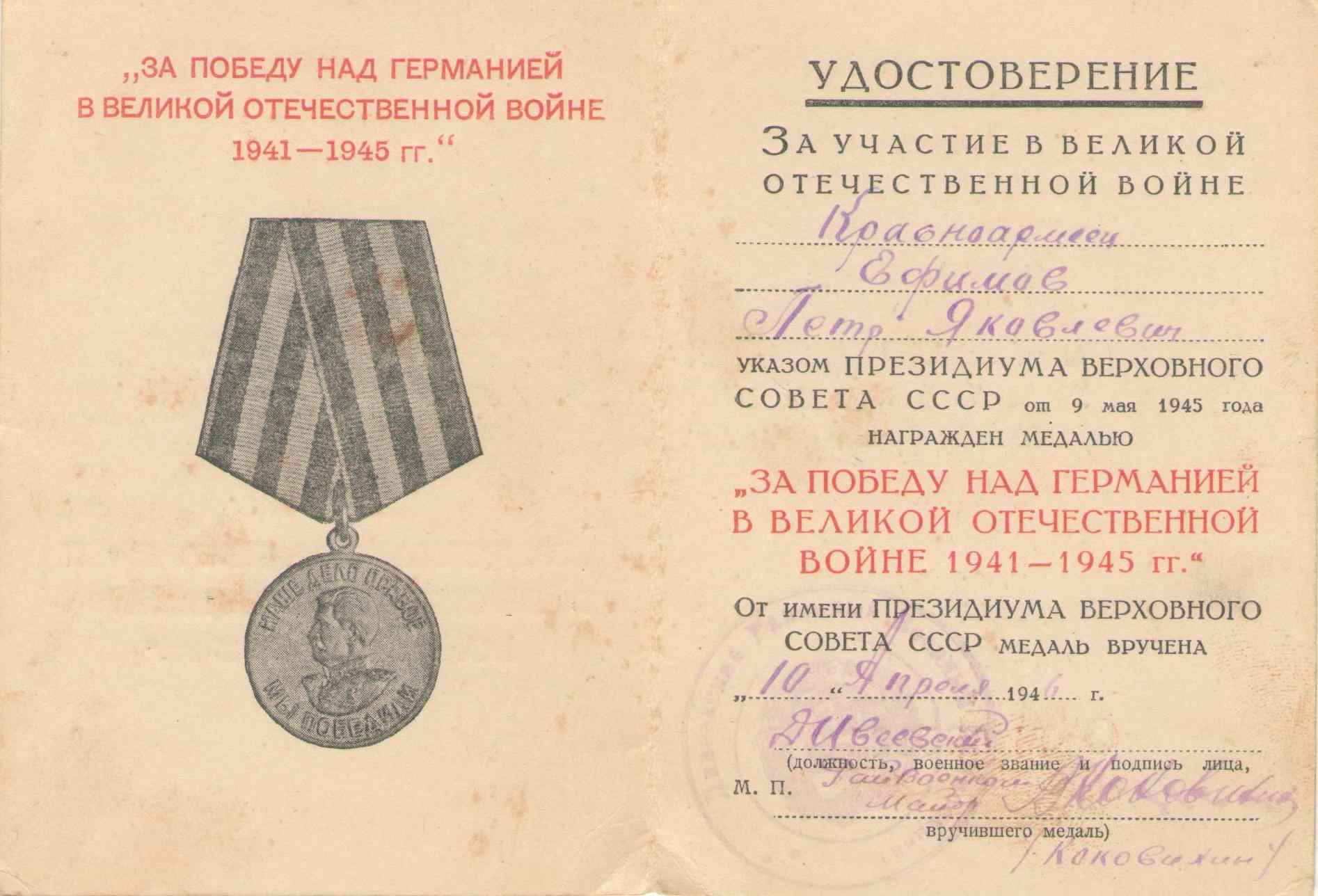 Отец Бутенко Лидии Петровны - Ефимов Петр Яковлевич