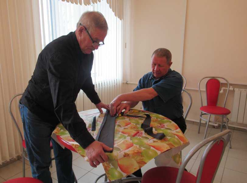 Этот призыв знаком нам всем, многие люди старшего поколения помнят, как в военное время тыл помогал фронту. Для участников СВО отдыхающие пенсионеры и инвалиды отделения дневного пребывания ГБУ «ЦСОГПВИИ Лысковского района» внесли посильную лепту. Все, как один, в течение нескольких занятий по трудотерапии, занимались заготовкой полосок ткани для изготовления маскировочных сеток. Кроме того, приносят металлические банки, из которых изготавливаются окопные свечи для солдат.
