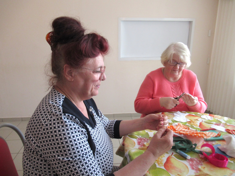 Недаром роза считается королевой среди садовых цветов. На занятиях по трудотерапии отдыхающие пенсионеры и инвалиды отделения дневного пребывания ГБУ «ЦСОГПВИИ Лысковского района» приступили к работе над панно с розами. Первый этап – правильно скрутить атласную ленту, чтобы потом превратить её в розовый бутон. Ещё несколько занятий и вот такое панно будет готово Красота да и только!