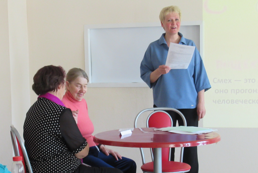 Весна, прекрасная погода, но и обострение болезней и депрессии. Смех- лекарство от всех болезней – говорили наши предки. Мероприятие было посвящено весёлому празднику – 1 апреля. Об истории праздника и его традициях рассказала Е.И. Маршева. Участники отвечали на шуточные вопросы, выполняли упражнения весёлой гимнастики, читали весёлые стихи, вспоминали весёлые рассказы Михаила Задорнова.