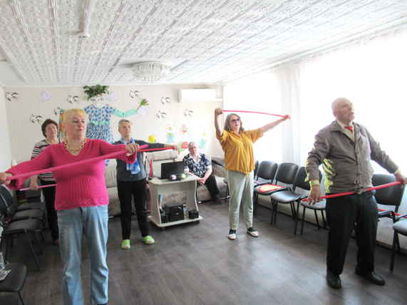 Все знают, что утром нужно делать зарядку, да не все это выполняют. Наверное, скучно одному заниматься физическими упражнениями. А вот каждое утро для отдыхающих пенсионеров и инвалидов отделения дневного пребывания ГБУ «ЦСОГПВИИ Лысковского района» начинается как раз с зарядки. Это упражнения с массажными мячиками, профилактическая зарядка против остеохондроза, занятия на спортивных тренажёрах. Занимаются все с большим удовольствием, понимая, что делают это для своего здоровья, для укрепления защитных функций организма, чтобы «тело и душа были молоды».