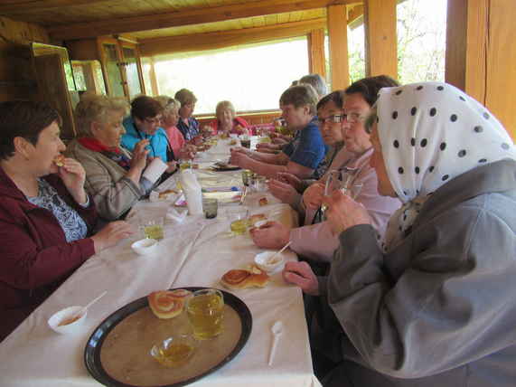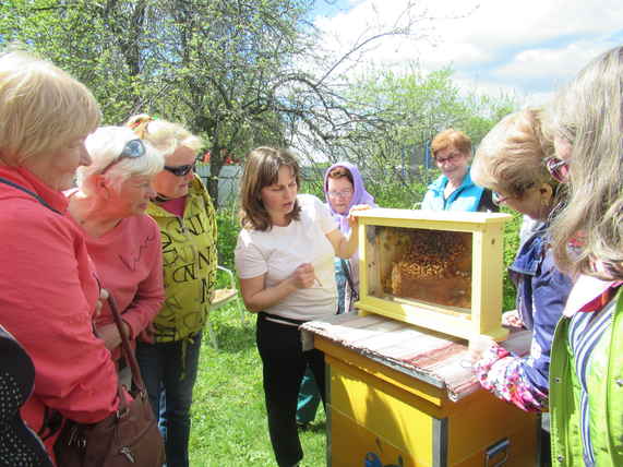 Путешествовать, познавая свои родные места, всегда очень интересно и полезно. Группа отдыхающих пенсионеров и инвалидов отделения дневного пребывания ГБУ «ЦСОГПВИИ Лысковского района» побывала сегодня сразу на трёх экскурсионных точках. Началось с посещения храма в честь Серафима Саровского в с. Летнево, где отец Димитрий познакомил с историей строительства храма, правилах посещения его, наиболее значимых для православных иконах и житии святых. Далее все побывали на конном подворье в д. Ермолино, где увидели разнообразных домашних животных и даже покатались верхом на лошадях. И на пасечном хозяйстве воочию увидели жизнь пчелиной семьи за стеклом. Наталья Лалакина очень увлекательно поведала о процессе сбора нектара, переработке его в сладкий и полезный продукт – мёд. Все отдыхающие с большим удовольствием угостились чаем, мёдом и плюшками. Охотно для себя прикупили продукты пчеловодства