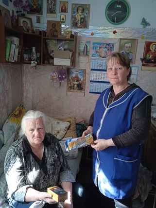 Социальные работники отделения социально-бытового обслуживания на дому ГБУ «ЦСОГПВИИ Лысковского района» поздравили граждан находящихся на обслуживании в отделениях с праздником Светлой Пасхи и вручили сладкие подарки.