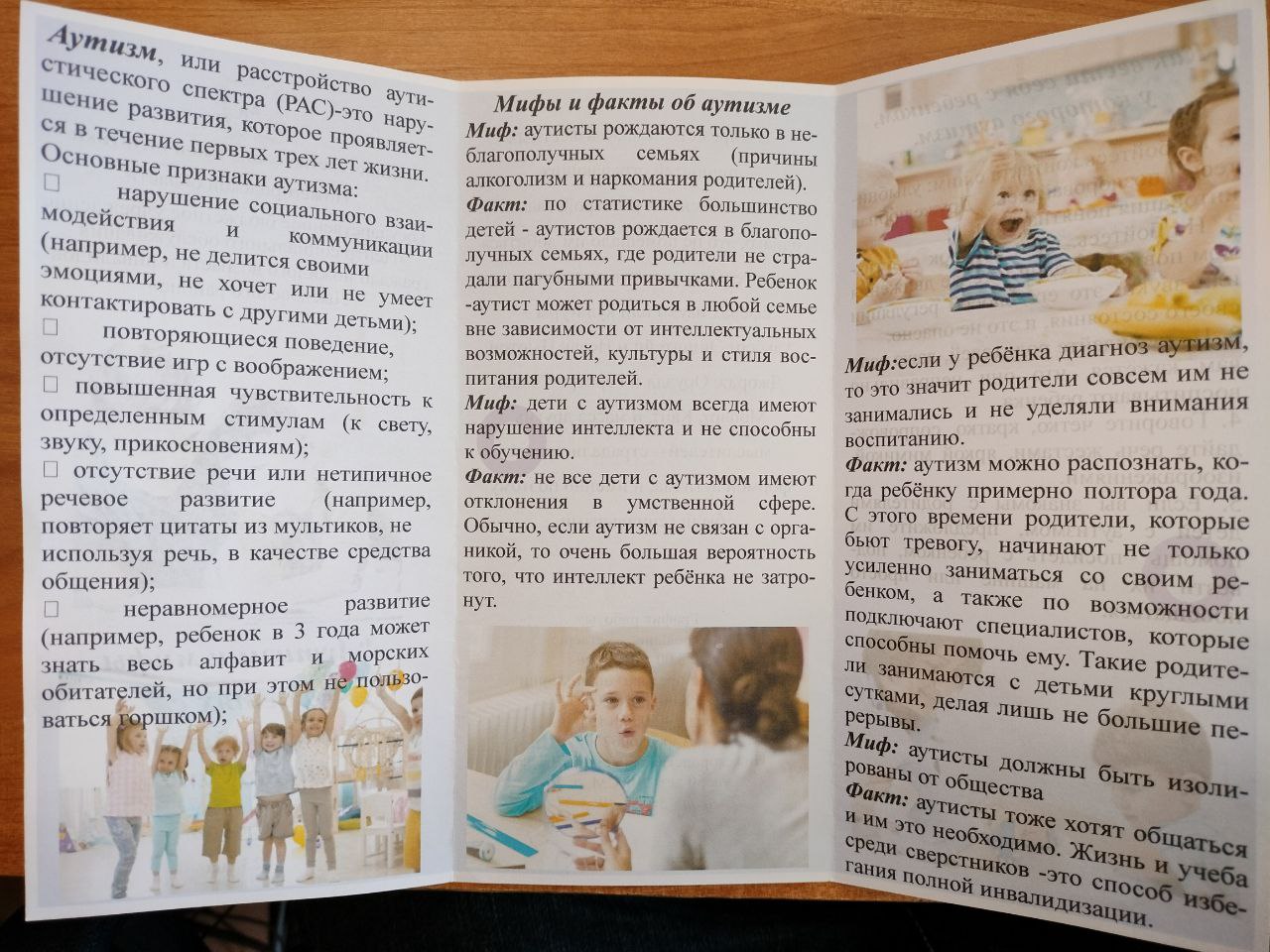 2 апреля 2023 г. стартует месячник распространения информации об аутизме. Специалисты отделения срочного социального обслуживания разработали и распространили буклет «Аутизм и мифы о детях с аутистическим спектром».