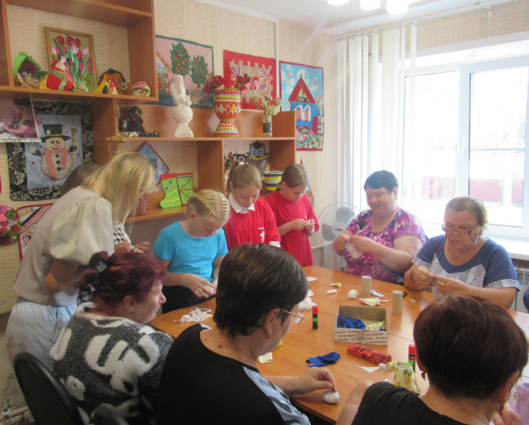 К отдыхающим пенсионерам и инвалидам в отделении дневного пребывания ГБУ «ЦСОГПВИИ Лысковского района» пришли в гости активисты Российского движения детей и молодежи. Воспитанники детского дома творчества и школы №3 в сопровождении специалиста по организации работы в Лысковском МО Заволжской Е.В. вместе с отдыхающими на занятии по трудотерапии приготовили сувениры – матрёшки. Этот хоровод – матрёшек заставляет улыбнуться. Как дорог сувенир, сделанный своими руками!
