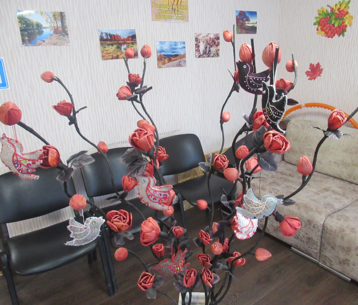 На занятиях трудотерапии отдыхающие отделения дневного пребывания ГБУ «ЦСОГПВИИ Лысковского района» очутились в сказочном саду, в котором живут райские птички и цветут необыкновенной красоты розы. Каждый собрал букет роз и приручил птичку.