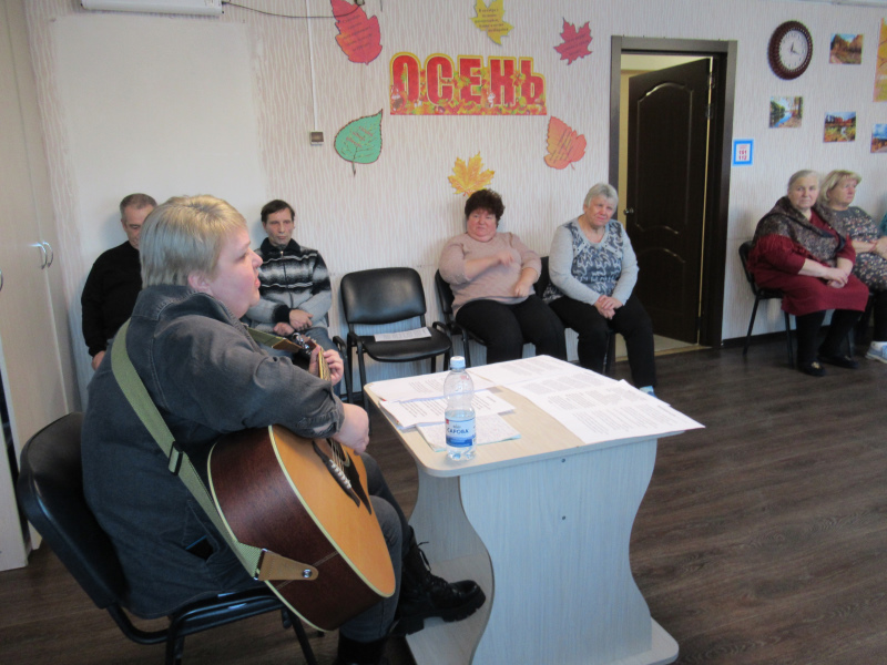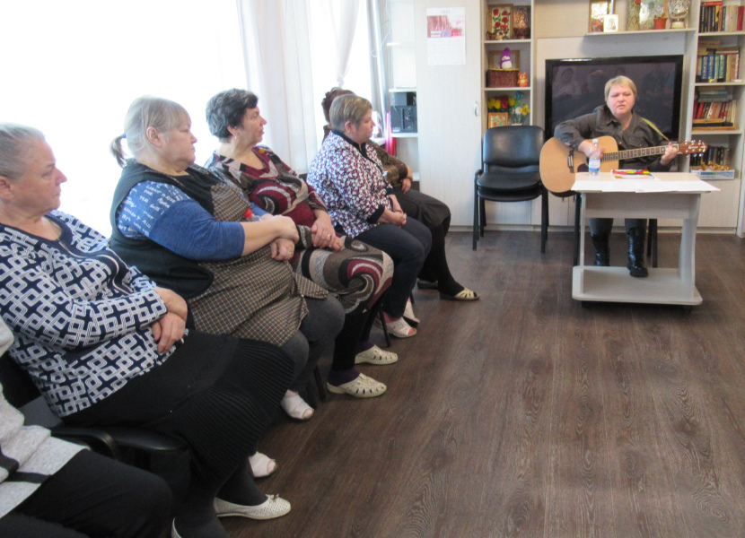 Ирина Лощилова – известный автор и исполнитель собственных песен, таких людей ещё с древних времён называют бардами. Она частый гость у отдыхающих пенсионеров и инвалидов отделения дневного пребывания ГБУ «ЦСОГПВИИ Лысковского района». Сегодня её концертная программа была посвящена песням Булата Окуджавы, известным многим в исполнении самого Булата Шалвовича и по кинофильмам: «Маленький оркестрик под управлением любви», «Ваше благородие, госпожа Удача», «Виноградная косточка», «Давайте восклицать!», «Музыкант» и другие. Исполнила Ирина и несколько своих авторских песен. Отдыхающие в конце встречи спели популярные песни и других бардов.