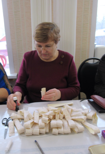 Все мы любуемся красотой зимних снежинок: необычным и неповторяющимся рисунком граней, тонкой ажурной резьбой каждой ледяной «жемчужины» - снежинки. На занятии по трудотерапии отдыхающие пенсионеры и инвалиды отделения дневного пребывания ГБУ «ЦСОГПВИИ Лысковского района» сами создали зимнее чудо – снежинки. Из простого обойного рулона нарезали полосок, собрали, склеили, украсили блёстками. Вот такие крупные, необычные, сказочные снежинки украсят дом в канун новогодних праздников. И белые, и голубые, розовые, серебристые... И главное – не тающие!