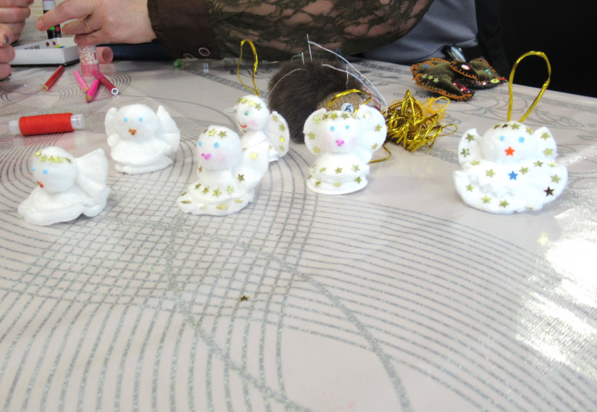 А смастерить рождественского сувенирного ангела совсем нетрудно: нужны старание, необходимые материалы и украшения. Наши рукодельницы из группы отдыхающих пенсионеров и инвалидов отделения дневного пребывания ГБУ «ЦСОГПВИИ Лысковского района» приложили все эти качества и «ангелочки» получились очень миленькими и симпатичными.