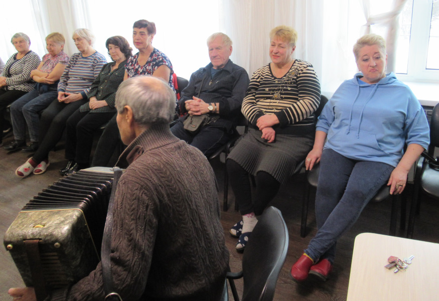 В наше время теперь гармонистов да баянистов можно перечесть по пальцам на руке. Тем радостнее встречи с мастерами, играющими на народных музыкальных инструментах. В нашу «Музыкальную гостиную» отделения дневного пребывания для пенсионеров и инвалидов ГБУ «ЦСОГПВИИ Лысковского района» был приглашён наш земляк Александр Кузьмин. Под аккомпанемент баяниста отдыхающими пелись песни, задорно-боевые, так и с грустинкой. Не усидели наши женщины на месте – ноги сами пустились в пляс, с частушечкой, с припевочкой.