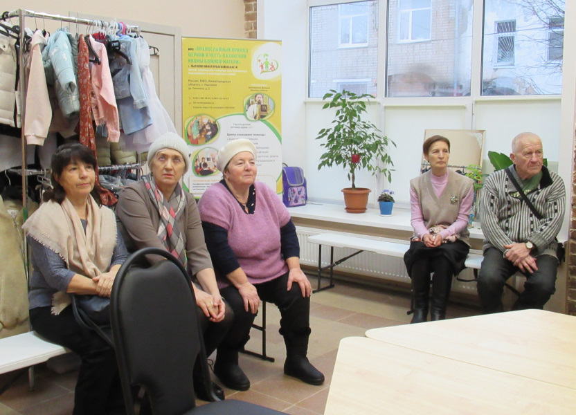 Группа отдыхающих пенсионеров и инвалидов отделения дневного пребывания ГБУ «ЦСОГПВИИ Лысковского района» посетила «Центр гуманитарной помощи семьям, попавшим в трудную жизненную ситуацию» при приходе в честь Казанской иконы Божией Матери. Протодиакон Виталий Шевчук рассказал о целях создания данного центра, помощи людям, как одеждой и продуктами питания, так и психологической консультации. Отдыхающими были заданы вопросы на религиозную тему, духовного воспитания и получены подробнейшие ответы.