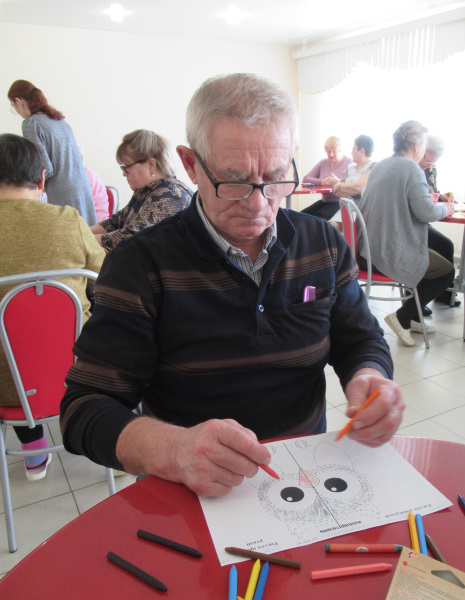 Сегодня отдыхающие отделения дневного пребывания, под чутким руководством психолога Березиной О.А., пробовали одновременно рисовать сразу двумя руками. Подобное упражнение благоприятно влияет на работу мозга и препятствует развитию деменции. А ещё оно очень увлекательное и для взрослых, и для детей!