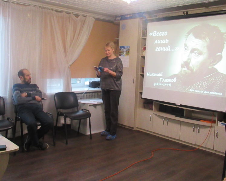 «Поэтом стать мне удалось. Быть человеком удавалось…» С таких слов начался вечер-портрет «Всего лишь гений», посвящённый нашему поэту - земляку Николаю Глазкову. О его нелёгкой жизни и творческой судьбе рассказали работники центральной библиотеки. Слушатели, отдыхающие пенсионеры и инвалиды дневного отделения ГБУ «ЦСОГПВИИ Лысковского района», познакомились со сборниками стихов поэта, из серии «Самиздат».