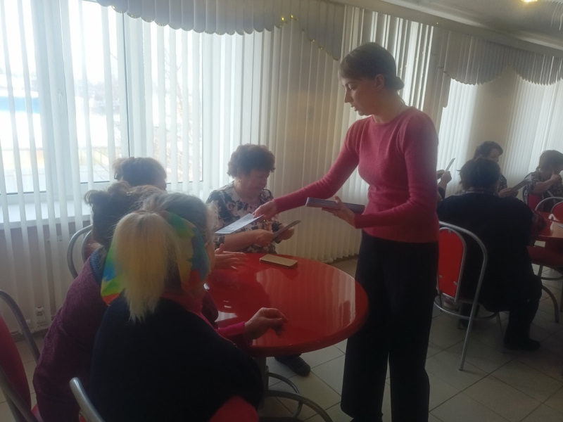 09 февраля 2024 года специалистом отделения срочного социального обслуживания ГБУ «ЦСОГПВИИ Лысковского района» Горошковой Ю.С. была проведена лекция-беседа по теме: «Как стать счастливым в старости?» для группы пенсионеров, отдыхающих в отделении дневного пребывания. Люди пожилого возраста ответили на такие вопросы как: что такое счастье и от чего оно зависит. Обсудили заповеди счастливого человека. Отдыхающим была показана презентация и небольшой видеоролик, а в конце беседы все участники получили буклеты.