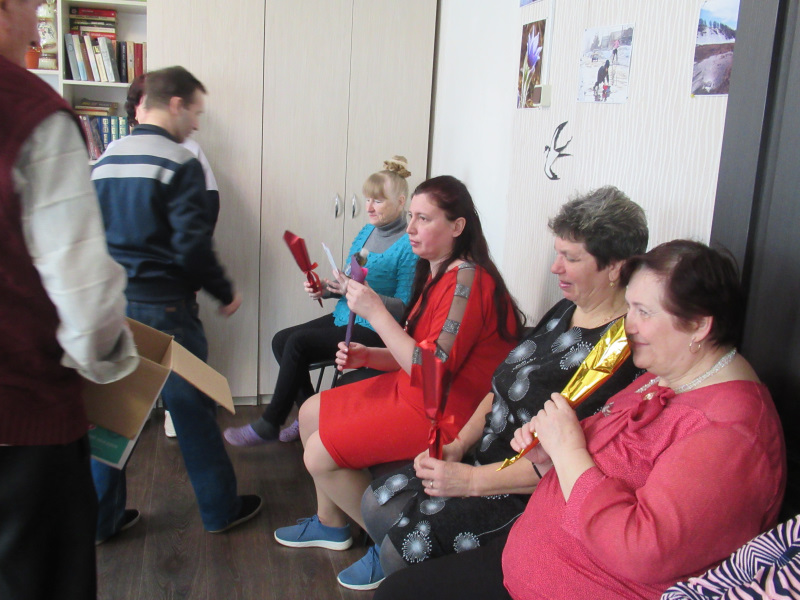 В канун Международного женского дня 8 марта все женщины группы отделения дневного пребывания ГБУ «ЦСОГПВИИ Лысковского района» услышали в свой адрес торжественные поздравления. В их честь звучали музыкальные видеооткрытки, песни, стихи. Каждая получила приятный сувенир из рук мужчин, отдыхающих в группе отделения дневного пребывания. Гармонист Александр Асафьев скучать не давал никому, все пели и танцевали. Милые наши женщины, улыбайтесь, расцветайте и будьте любимыми и счастливыми!