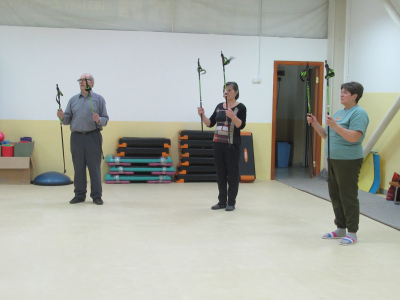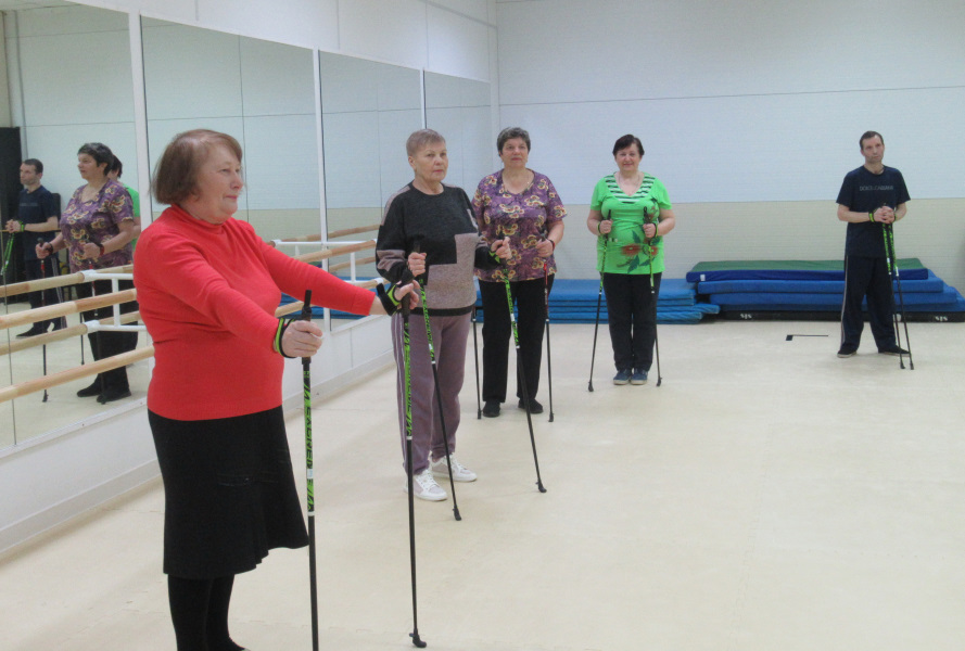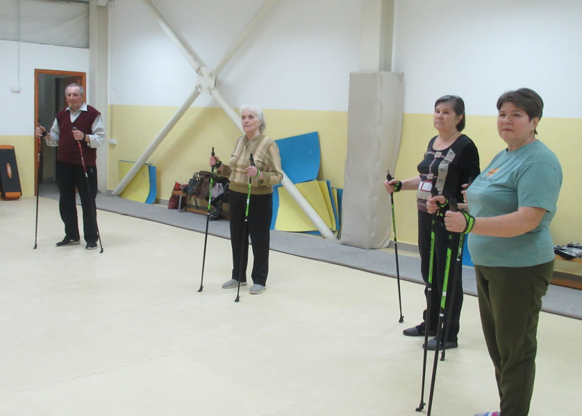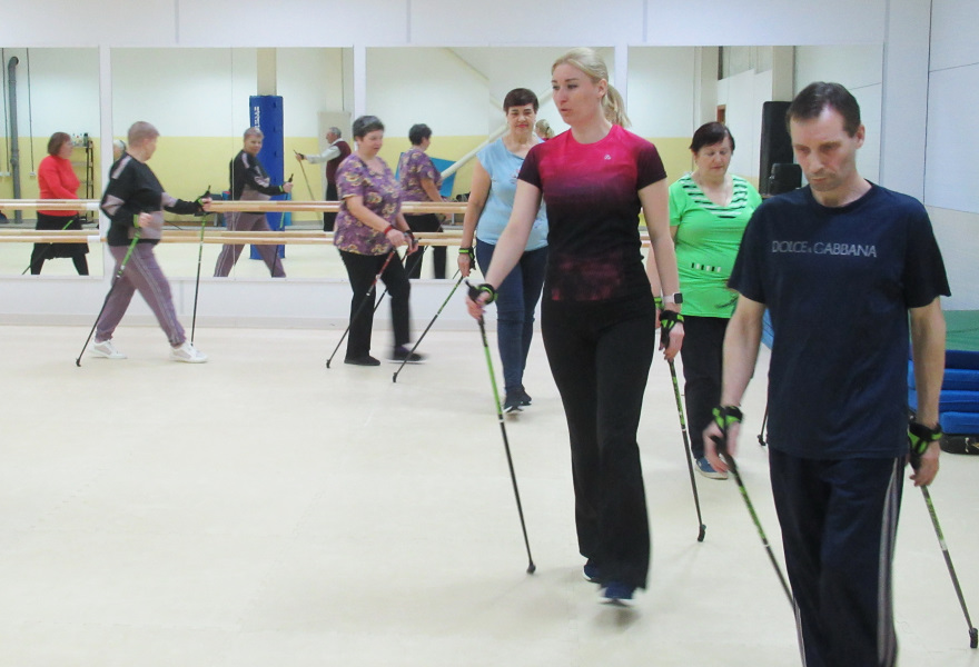 Группа отдыхающих пенсионеров и инвалидов, отдыхающих в отделении дневного пребывания ГБУ «ЦСОГПВИИ Лысковского района», провела на базе ФОК «Олимп» половину дня. Сегодняшнее занятие было посвящено самому популярному сейчас спортивному направлению - скандинавской ходьбе. После занятий в тренажёрном зале все перешли в другой спортзал, где инструктор-методист по адаптивной физической культуре Екатерина Максимова рассказала о пользе ходьбы, показала правильную подготовку к занятию, и отдыхающие с удовольствием потренировались.