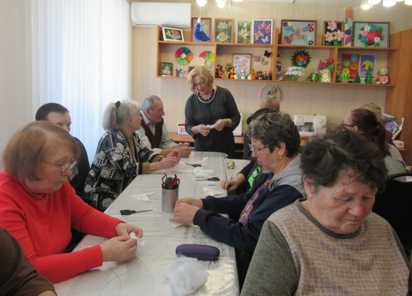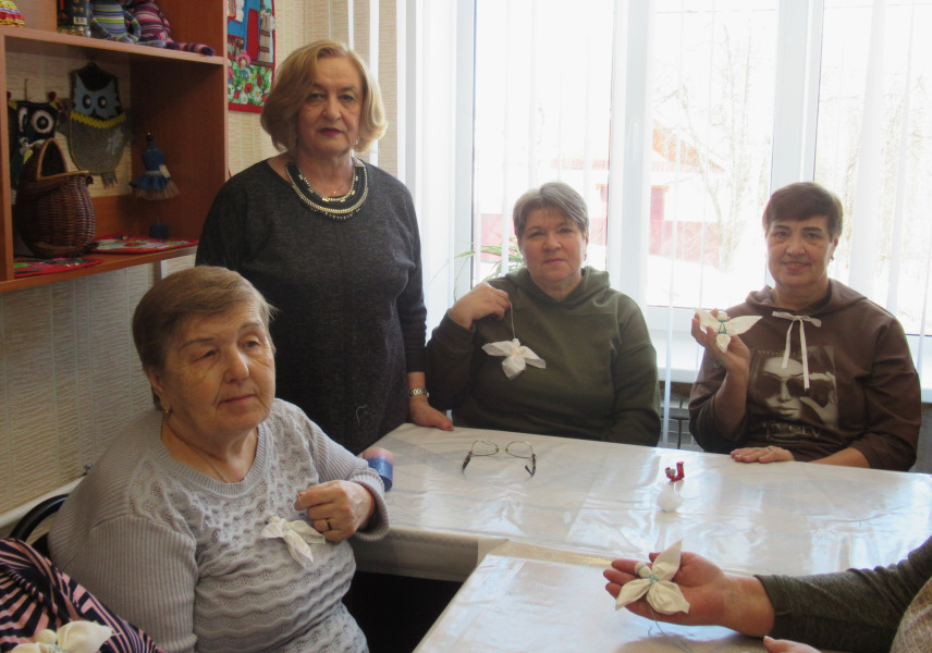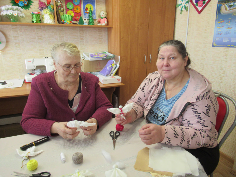 Давняя дружба связывает отдыхающих отделения дневного пребывания ГБУ «ЦСОГПВИИ Лысковского района» и МБУК РЦНПРТ «Рассвет». Наши обслуживаемые частые гости на выставках работ кружков по прикладному творчеству. Руководитель кружка по лоскутному шитью Е. Н. Кузнецова провела для отдыхающих мастер-класс по изготовлению фигурки «ангела» из белоснежных лоскутков. Все активно взялись за дело, и вскоре у каждого в руках был свой сувенир.
