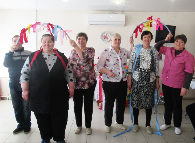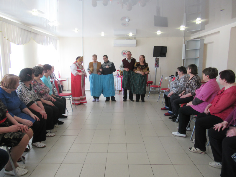 Отдыхающие отделения дневного пребывания ГБУ «ЦСОГПВИИ Лысковкого района» тоже решили устроить праздник- Масленицу. Надо зиму провожать, да блинами всех угощать. Напекли гору блинов, да все с разными начинками. Каждый уложил блины на тарелку по-своему, кто «конвертиком», кто «мешочком», кто трубочкой свернул, кто красивую блинную «картину» нарисовал, даже блинный торт был. Да и развлечения весёлые были: командная эстафета с блинами, парный бег в широченных брюках, сбор пирамиды, песенное и частушечное соревнование, даже на «тройке» покатались, дружно танцевали. Веселья и смеха было не занимать!