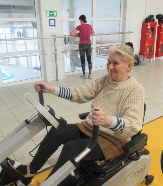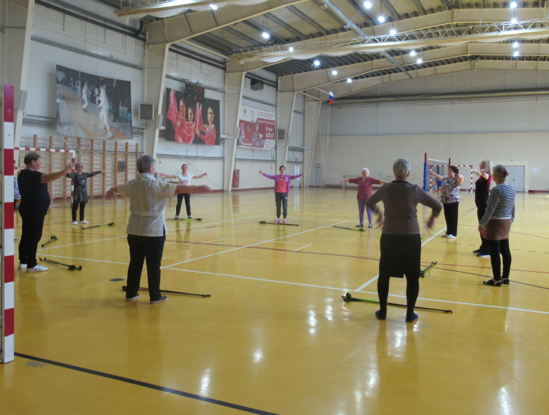 Именно так проводят свои «Дни здоровья» отдыхающие отделения дневного пребывания ГБУ «ЦСОГПВИИ Лысковского района» на ФОКе «Олимп». Сегодня по плану, после занятий в тренажёрном зале и оздоровительной гимнастики, тренинг по скандинавской ходьбе.