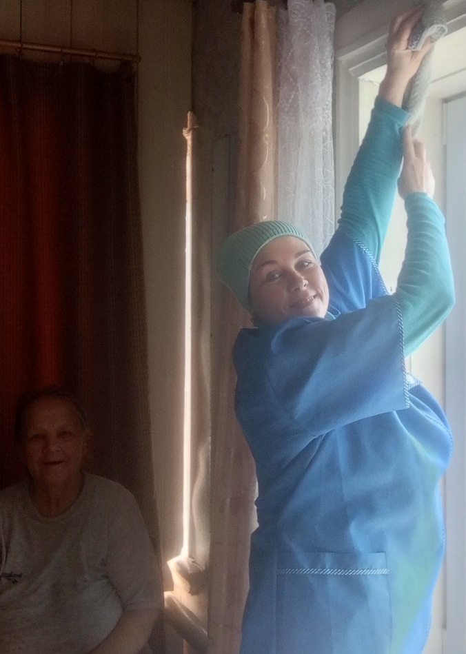 В отделении социально-бытового обслуживания на дому продолжается подготовка жилых помещений граждан, находящихся на надомном обслуживании, к светлому празднику Пасхи. После зимы хочется впустить в свой дом весеннее настроение и чистоту. Социальные работники помогают своим обслуживаемым гражданам в генеральной уборке жилых помещений: моют окна и потолки, протирают стены, меняют шторы, оказывают помощь в побелке печей. Для граждан пожилого возраста – это ощутимая помощь по дому, который наполняется чистым воздухом и праздничным настроением.