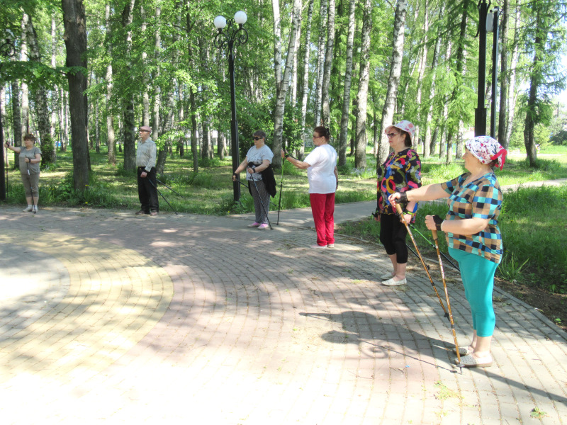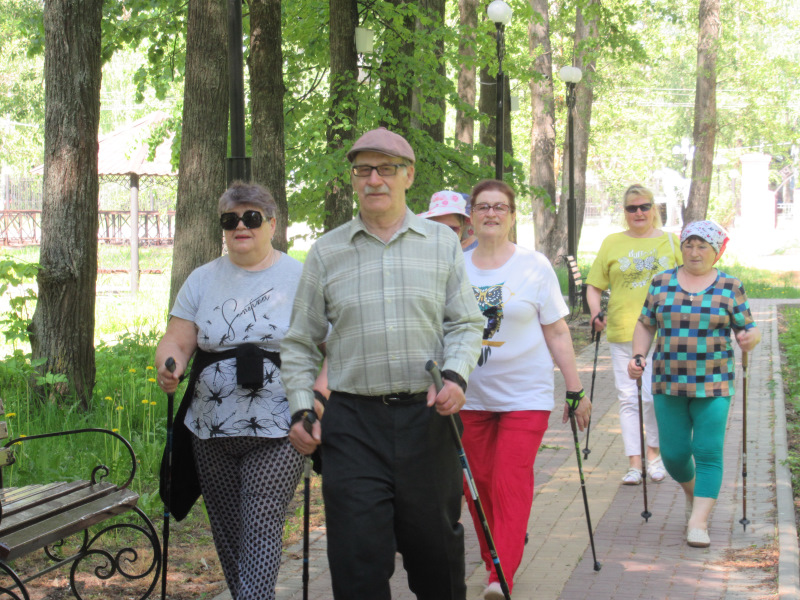 В городском парке для отдыхающих отделения дневного пребывания ГБУ «ЦСОГПВИИ Лысковского района» прошёл тренинг по навыкам скандинавской ходьбы. Инструктор - методист ФОК по адаптивной физической культуре Максимова Екатерина провела разминку, пошагово показав все правила подбора спортивного инвентаря, положения корпуса во время движения. Отдыхающие активно прошлись по аллеям парка, получив массу положительных эмоций.